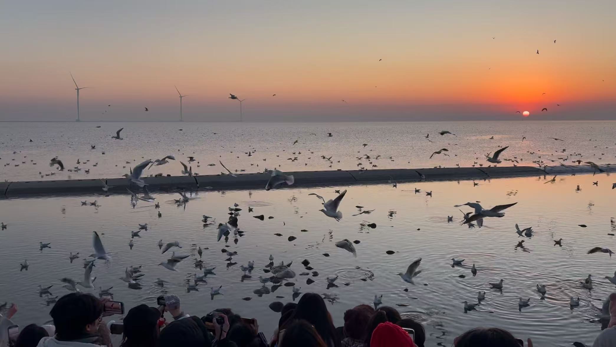 - 1 月 19 日,与小可和她的两个好友在天津海边喂海鸥。
