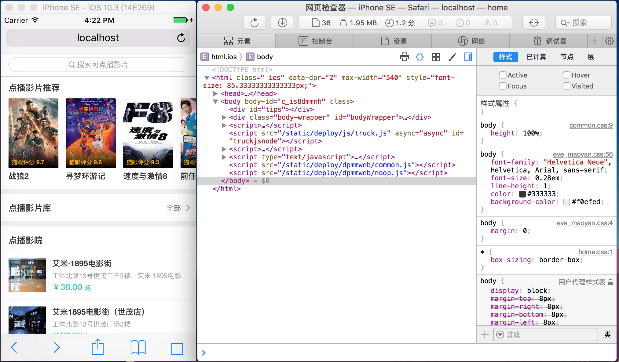 之后,就可以像通用浏览器调试流程一样对 iOS Safari 进行开发、调试了。